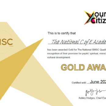 The National Church of England Academy are pleased to announce that we have achieved the Young Citizens Gold Award recognition for excellence in SMSC- Spiritual, Moral, Social and Cultural development.