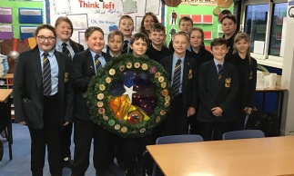 Students in 7N have produced a beautiful Christmas wreath, inspired by the stained glass windows of St Mary Magdalene's church and the nativity scene.