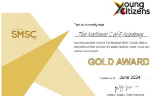 The National Church of England Academy are pleased to announce that we have achieved the Young Citizens Gold Award recognition for excellence in SMSC- Spiritual, Moral, Social and Cultural development.