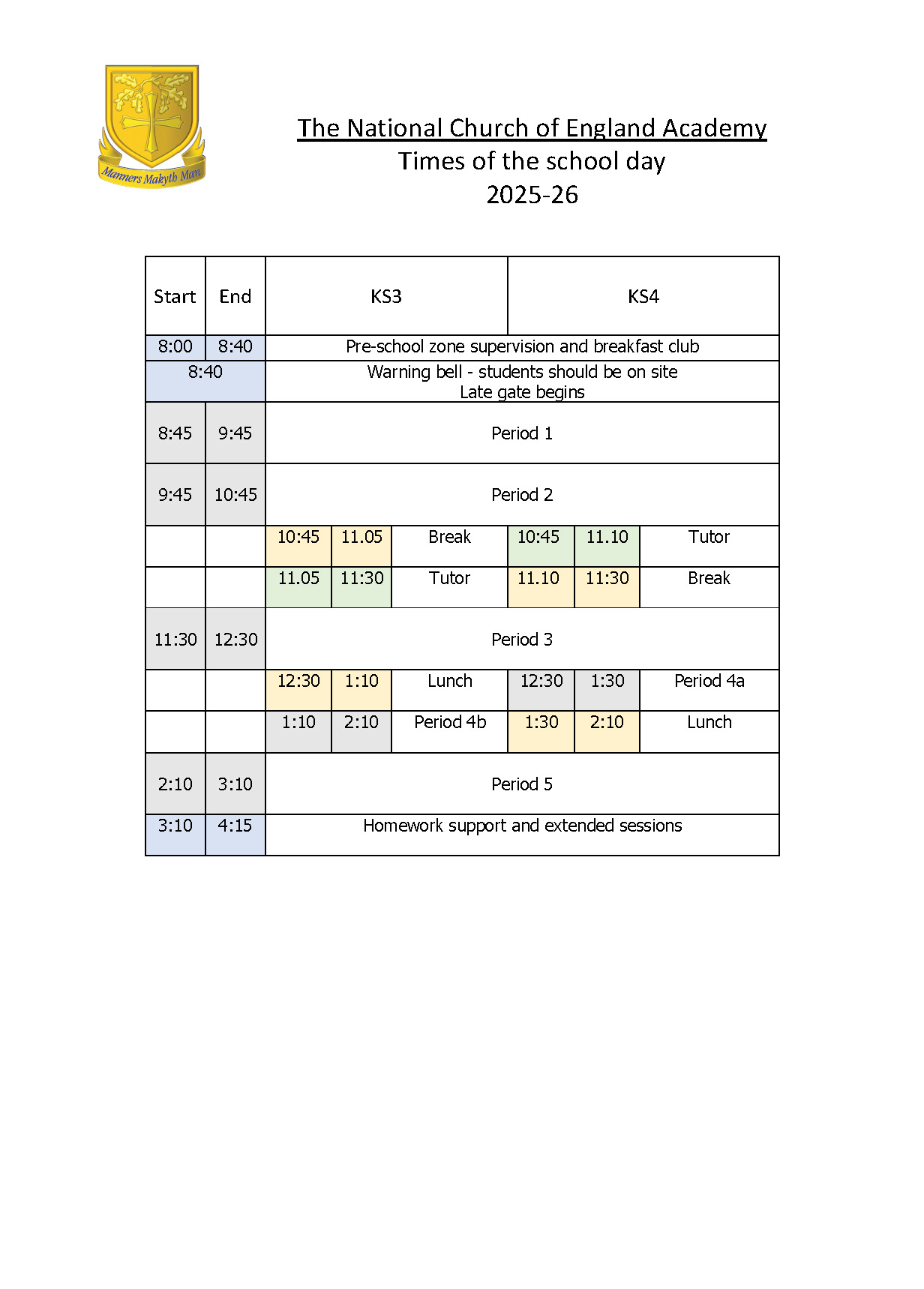 If heavy rain/sleet/snow unexpectedly arrives at different points in the day, the leadership team will take the decision at the time for break and lunchtime.